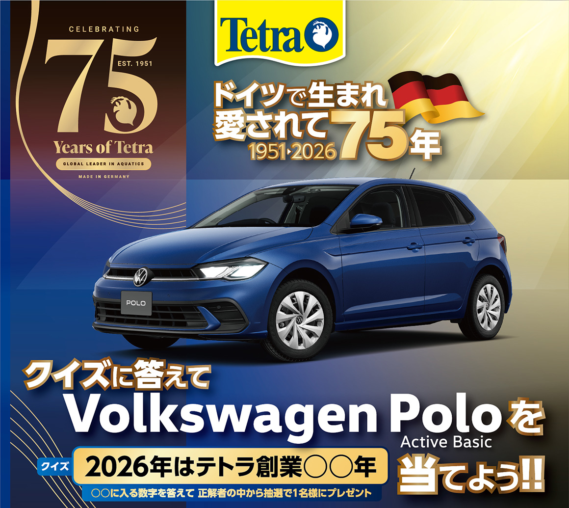 スペクトラム ブランズ ジャパン株式会社以下「主催者」といいます)が実施する、テトラ75周年「クイズに答えてフォルクスワーゲン POLO Active Basicが当たる!」キャンペーン(以下「本キャンペーン」といいます)にご応募いただく前に、本規約をよくお読みください。本キャンペーンに応募された場合、本規約に同意したものとみなします。